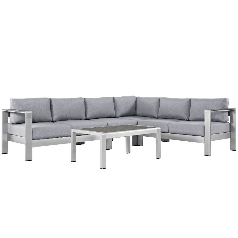 Modway Shore 5-Piece Aluminum Outdoor Patio Sectional Sofa Set in Silver Gray