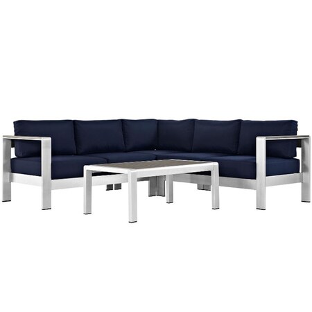 Modway Shore 4-Piece Aluminum Outdoor Patio Sectional Sofa Set in Silver Navy