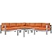 Modway Shore 6-Piece Aluminum Outdoor Patio Sectional Sofa Set in Silver Orange