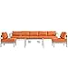 Modway Shore 6-Piece Aluminum Outdoor Patio Sectional Sofa Set in Silver Orange