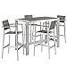 Modway Shore 5-Piece Aluminum Outdoor Patio Pub Bistro Set with Bar Stools in Silver Gray
