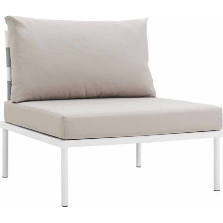 Harmony Collection EEI-2600-WHI-BEI 33" Armless Outdoor Patio Chair with Silk Polyester Seat and Back Weave, Aluminum Frame and All-Weather Canvas Fabric Cushions in White and Beige Color