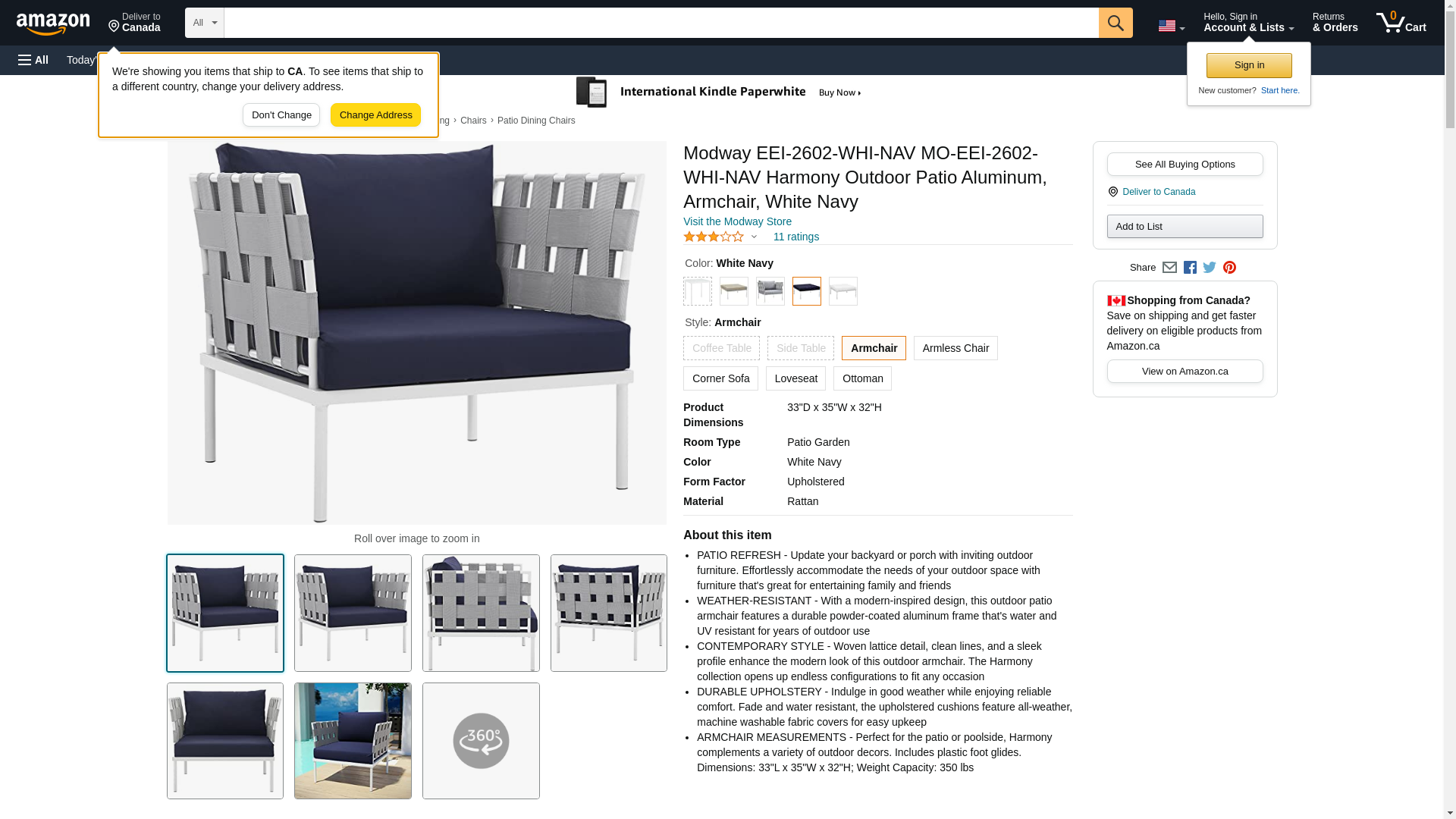 Modway EEI-2602-WHI-NAV MO-EEI-2602-WHI-NAV Harmony Outdoor Patio Aluminum, Armchair, White Navy