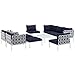 Modway Harmony 10 Piece Outdoor Patio Aluminum Sectional Sofa Set in White Navy