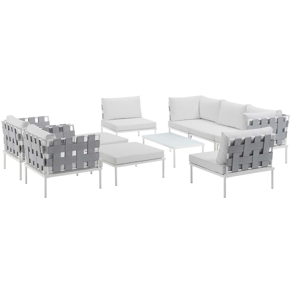 Modway Harmony 10 Piece Outdoor Patio Aluminum Sectional Sofa Set in White White