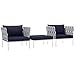 Modway Harmony 3 Piece Outdoor Patio Aluminum Sectional Sofa Set in White Navy