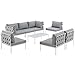 Modway Harmony 8-Piece Aluminum Outdoor Patio Furniture Sectional Sofa Set with Cushions in White Gray