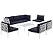 Harmony Collection EEI-2625-WHI-NAV-SET 8-Piece Outdoor Patio Aluminum Sectional Sofa Set with 5 Armless Chairs, Coffee Table and 2 Corner Sofas in Navy