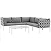 Modway Harmony 6-Piece Aluminum Outdoor Patio Furniture Sectional Sofa Set with Cushions in White Gray