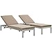Modway Shore Aluminum Outdoor Patio Two Poolside Chaise Lounge Chairs with Cushions and Side End Table in Silver Mocha