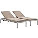 Modway Shore Aluminum Outdoor Patio Two Chaise Lounge Chairs with Cushions in Silver Mocha