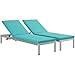 Modway Shore Aluminum Outdoor Patio Two Chaise Lounge Chairs with Cushions in Silver Turquoise