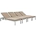 Modway Shore Aluminum Outdoor Patio Four Chaise Lounge Chairs with Cushions in Silver Mocha