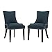 Modway Marquis Modern Elegant Upholstered Fabric Parsons Dining Side Chair with Nailhead Trim and Wood Legs, Set of 2, Azure