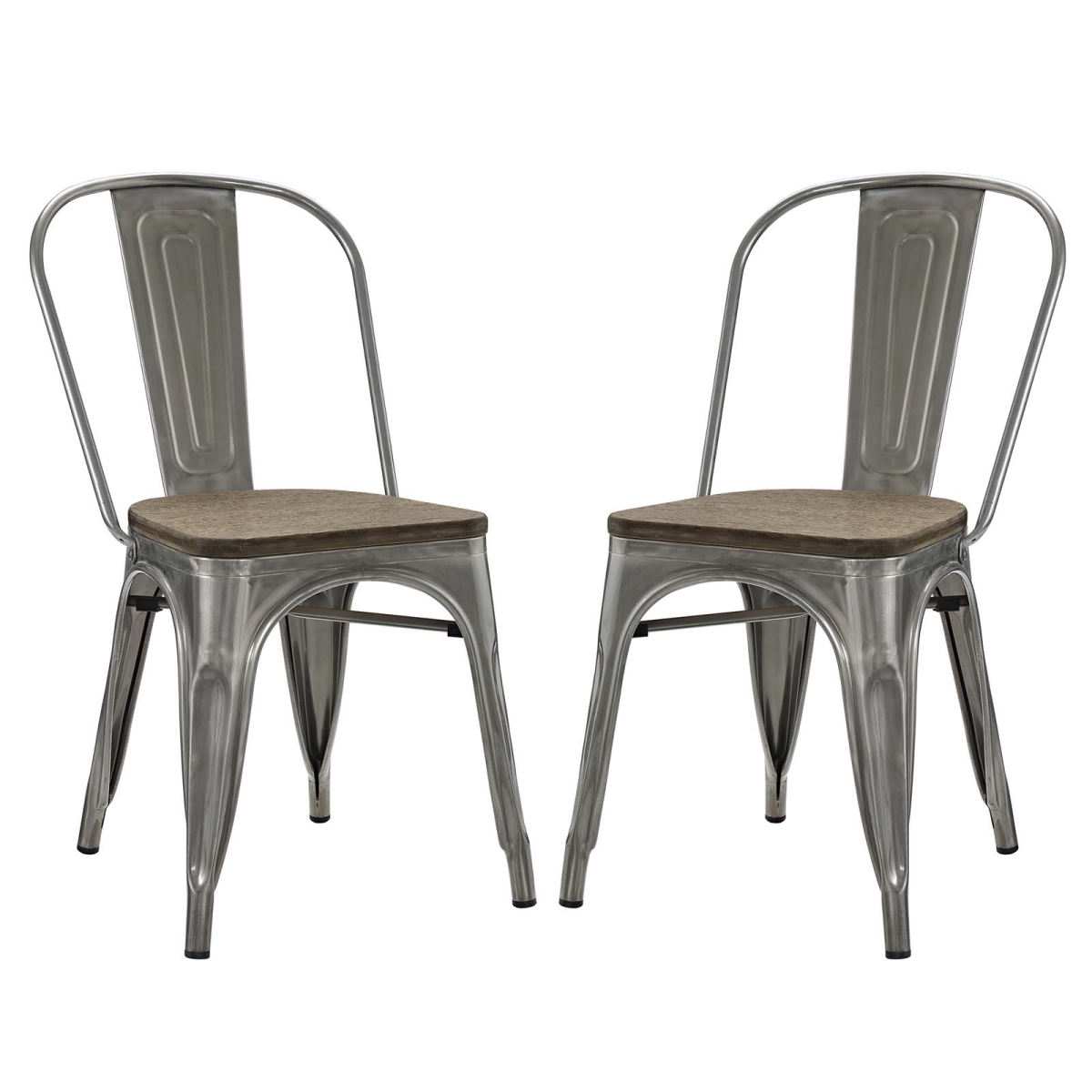 Modway Promenade Industrial Modern Steel Kitchen and Dining Room Gunmetal, Two Bamboo Side Chairs