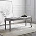 - FINE UPHOLSTERY - Upholstered in polyester fabric, this Parisian styled bench adds distinction in any home or apartment. Graceful detail and button tufting are a luxe complement to the weathered frame