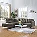 Modway Empress Sofa Mid-Century Modern Upholstered Fabric, Left Facing Bumper Sectional, Granite