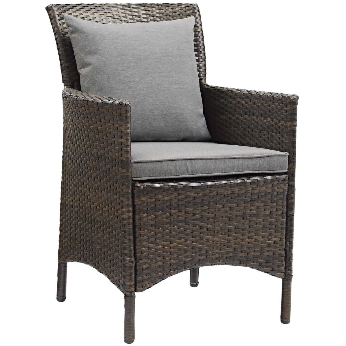 Modway Converge Wicker Rattan Outdoor Patio Dining Arm Chair with Cushion in Brown Gray