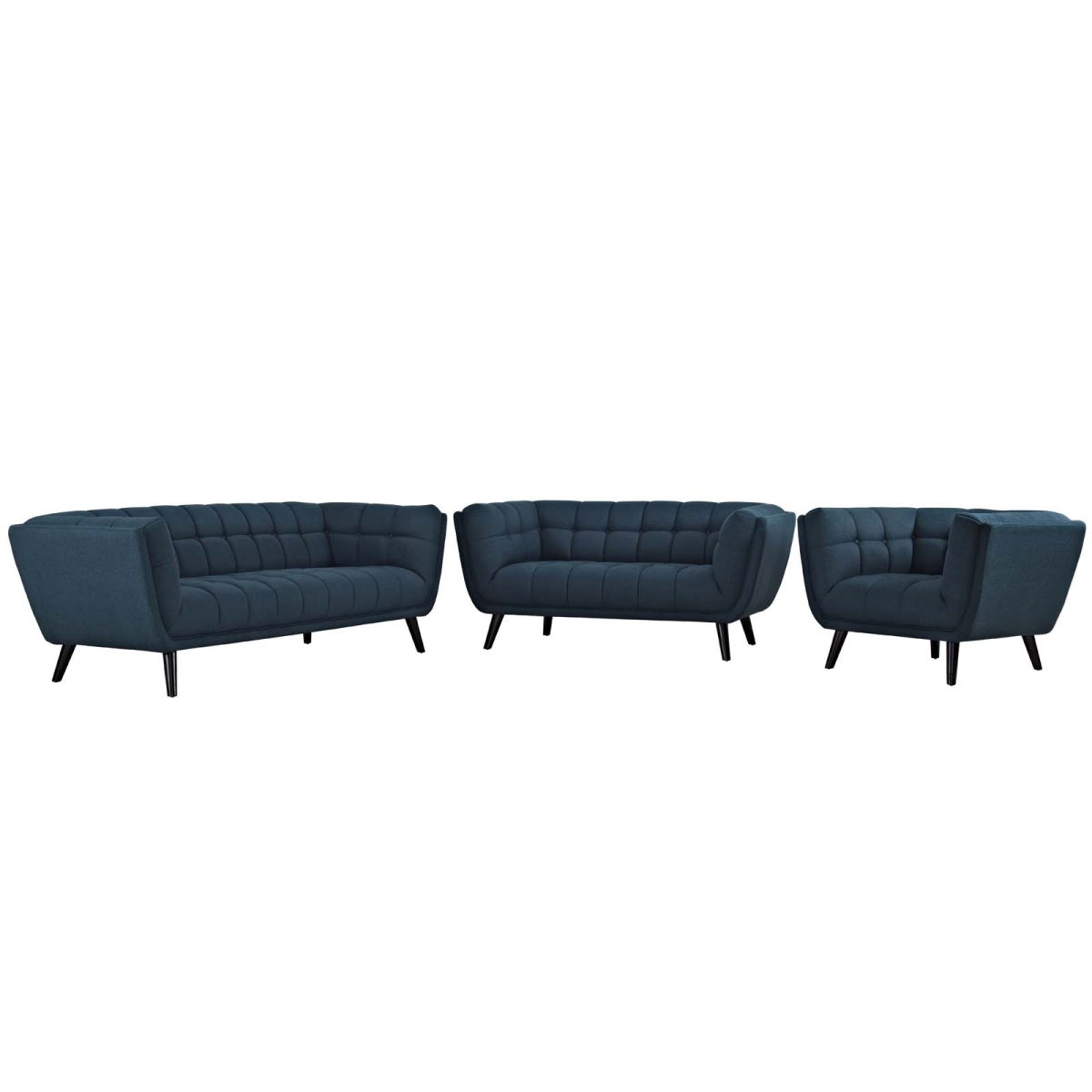 Modway EEI-2974-BLU-SET Bestow 3 Piece Upholstered Fabric Sofa Loveseat and Armchair Set, Blue