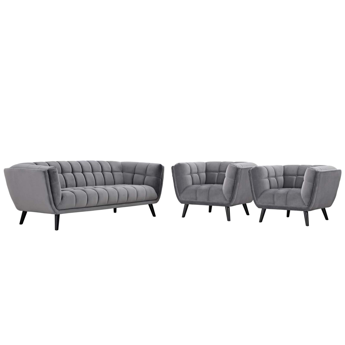 Modway Bestow Upholstered Velvet Button-Tufted Sofa and Armchairs 3-Piece Set in Gray