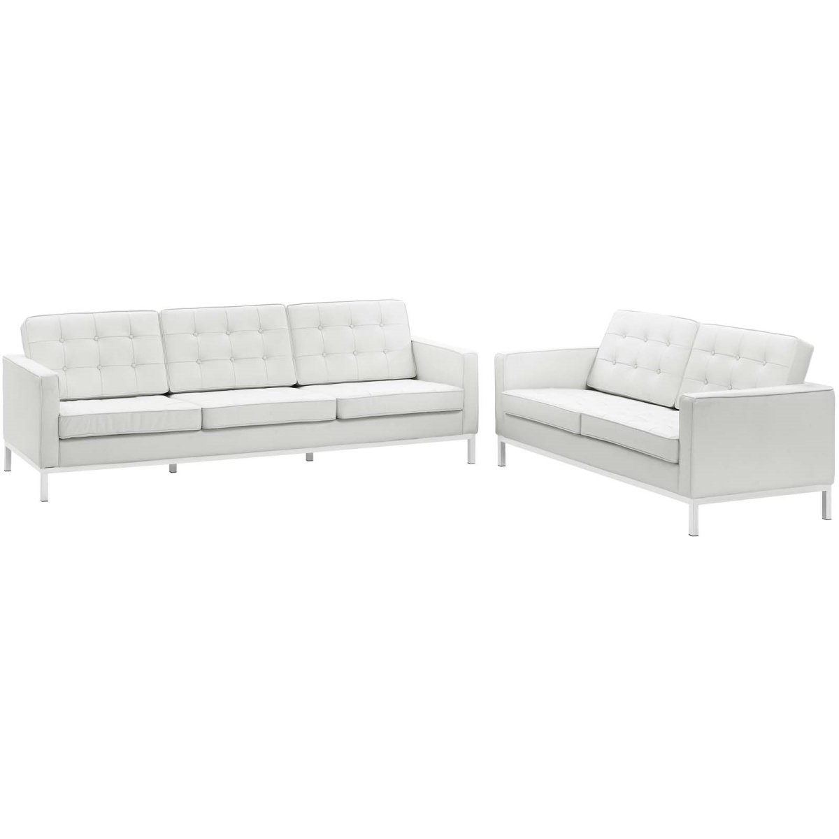 Modway Loft Upholstered Leather Mid-Century Modern Living Room Sofa and Loveseat Set in White