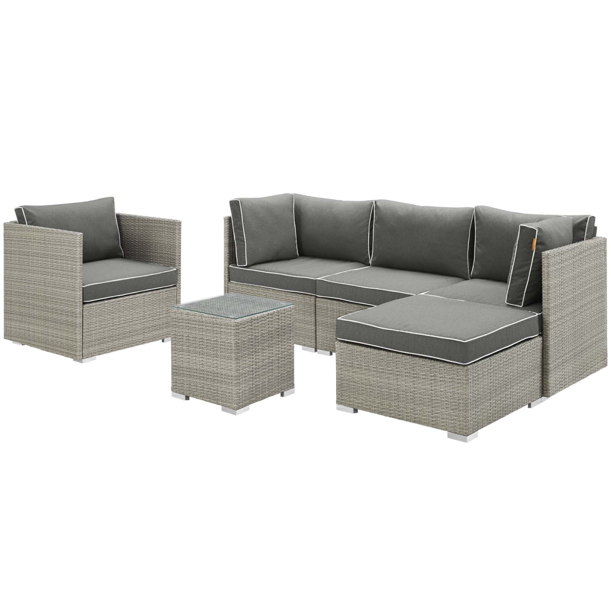 Modway EEI-3014-LGR-CHA-SET Repose Outdoor Patio Sectional Set, 6 Piece, Light Gray Charcoal