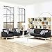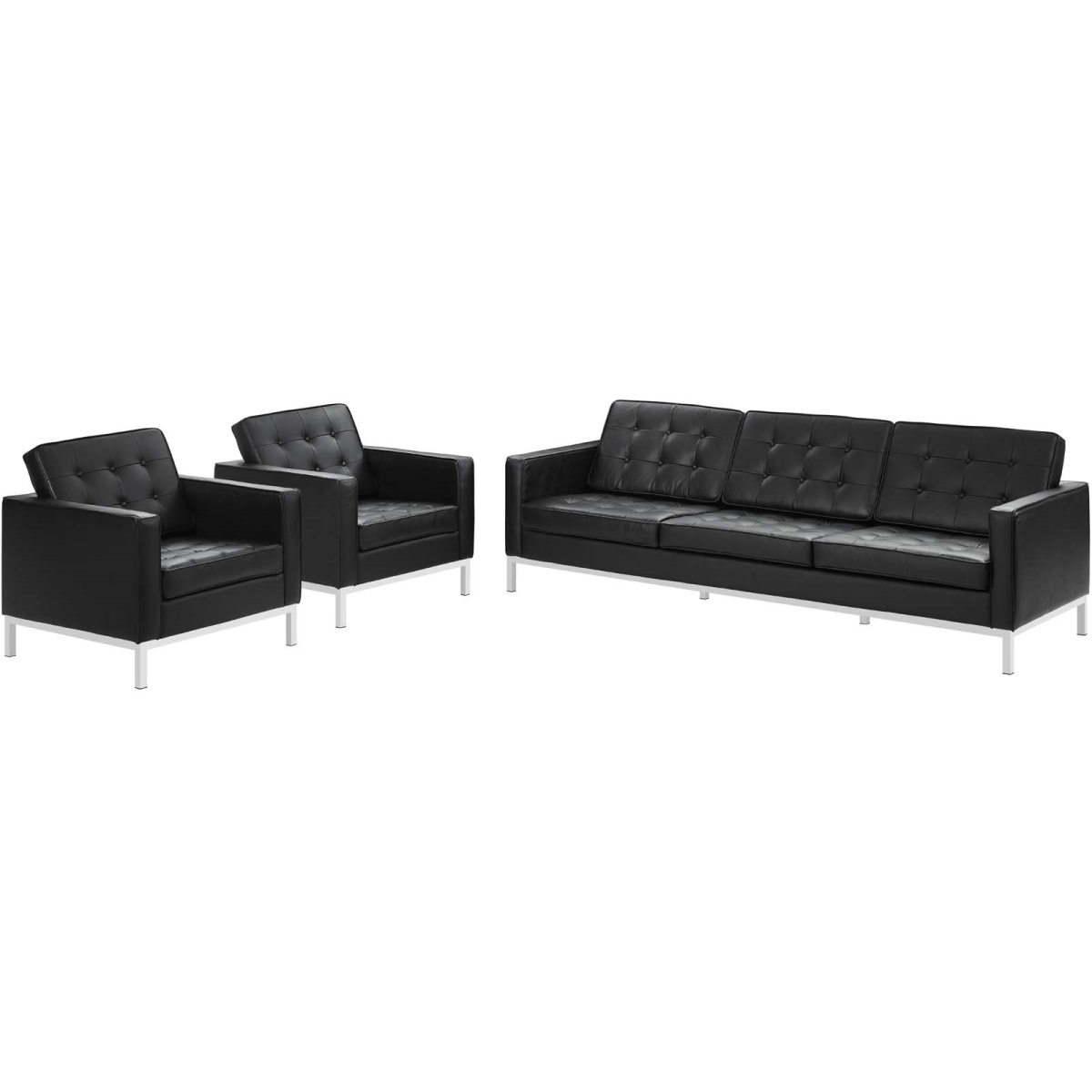 Modway Loft Upholstered Leather Mid-Century Modern Living Room Sofa and Two Armchair Set in Black
