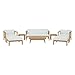 Modway EEI-3110-NAT-WHI-SET Bayport Outdoor Patio Teak Set, Two Armchairs, Two Ottoman, Two Side Table, Loveseat, and Coffee Table, Natural White