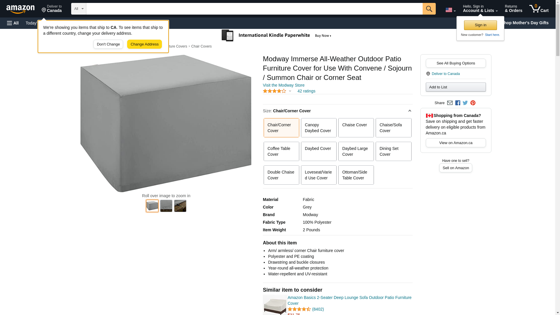 Immerse Collection EEI-3140-GRY Convene, Sojourn, Summon Chair or Corner Outdoor Patio Furniture Cover with Polyester and PE Coating, All-Weather Protection, Drawstring and Buckle Closures in Grey Color