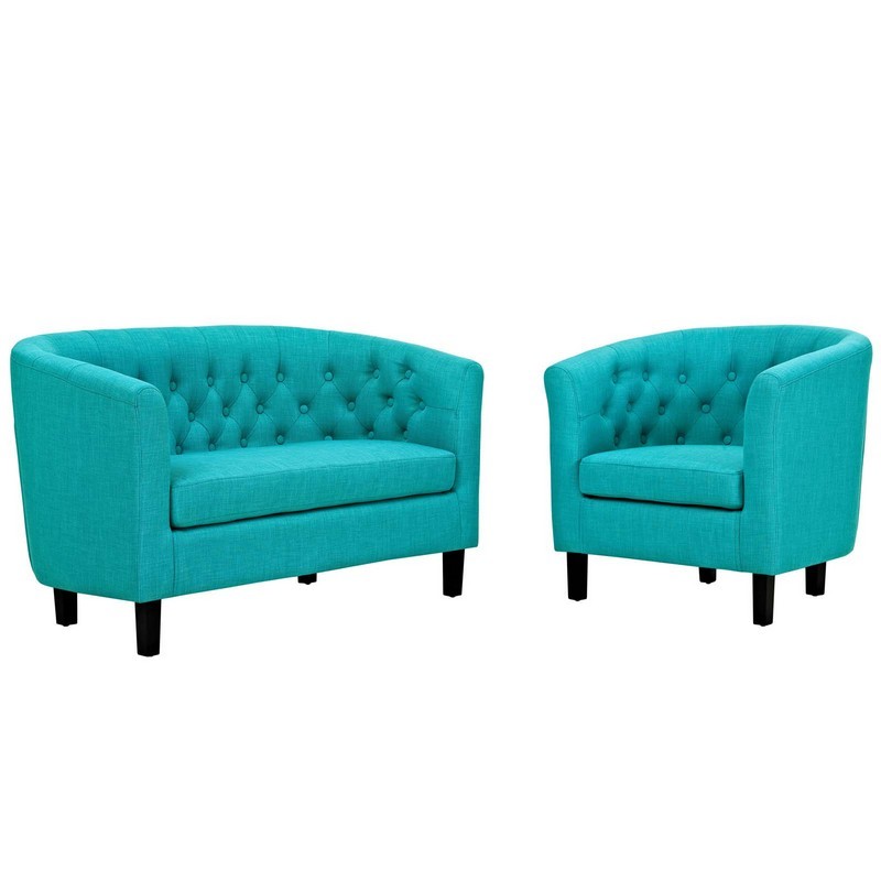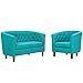 Modway Prospect Upholstered Fabric Contemporary Modern Loveseat and Armchair in Pure Water