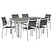 Shore Collection EEI-3200-SLV-BLK-SET 7 PC Outdoor Patio Aluminum Outdoor Dining Set with Breathable Textilene Mesh, Anodized Aluminum Frame and Plastic Wood Accent Paneling in Silver and Black Color