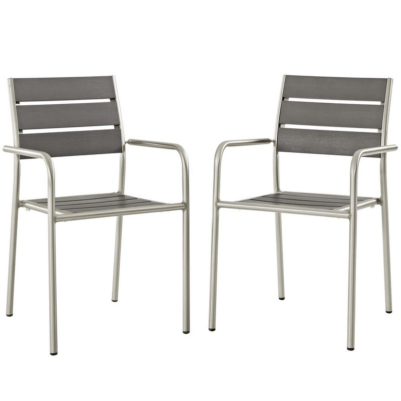 Modway EEI-3203-SLV-GRY-SET Shore Outdoor Patio Aluminum Chair, Two Dining Armchairs, Silver Gray