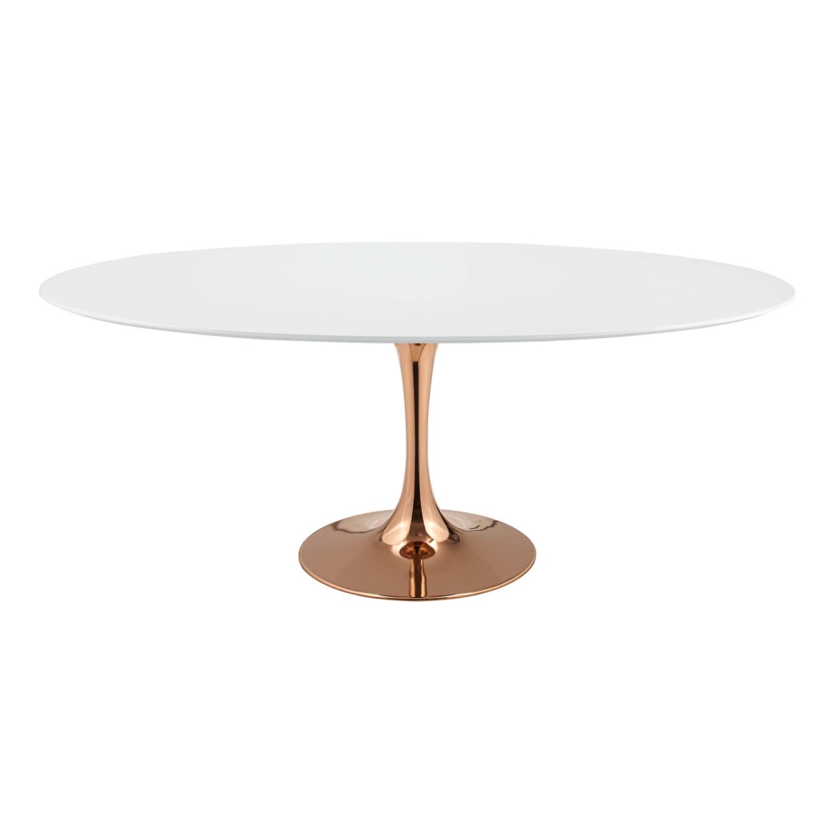 Modway Lippa 78" Mid-Century Modern Dining Table with Oval White Top and Pedestal Base in Rose White
