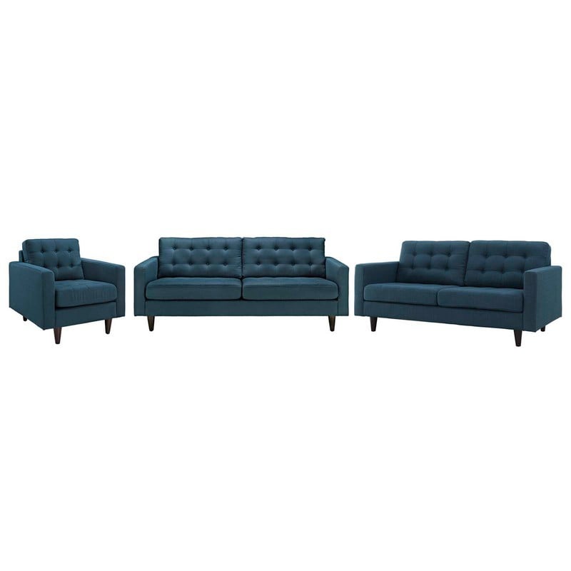 Modway Empress Sofa, Loveseat and Armchair Set of 3, Azure