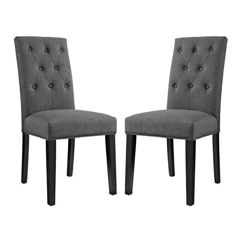 Modway Confer Modern Tufted Upholstered Fabric Parsons Two Kitchen and Dining Room Chairs in Gray