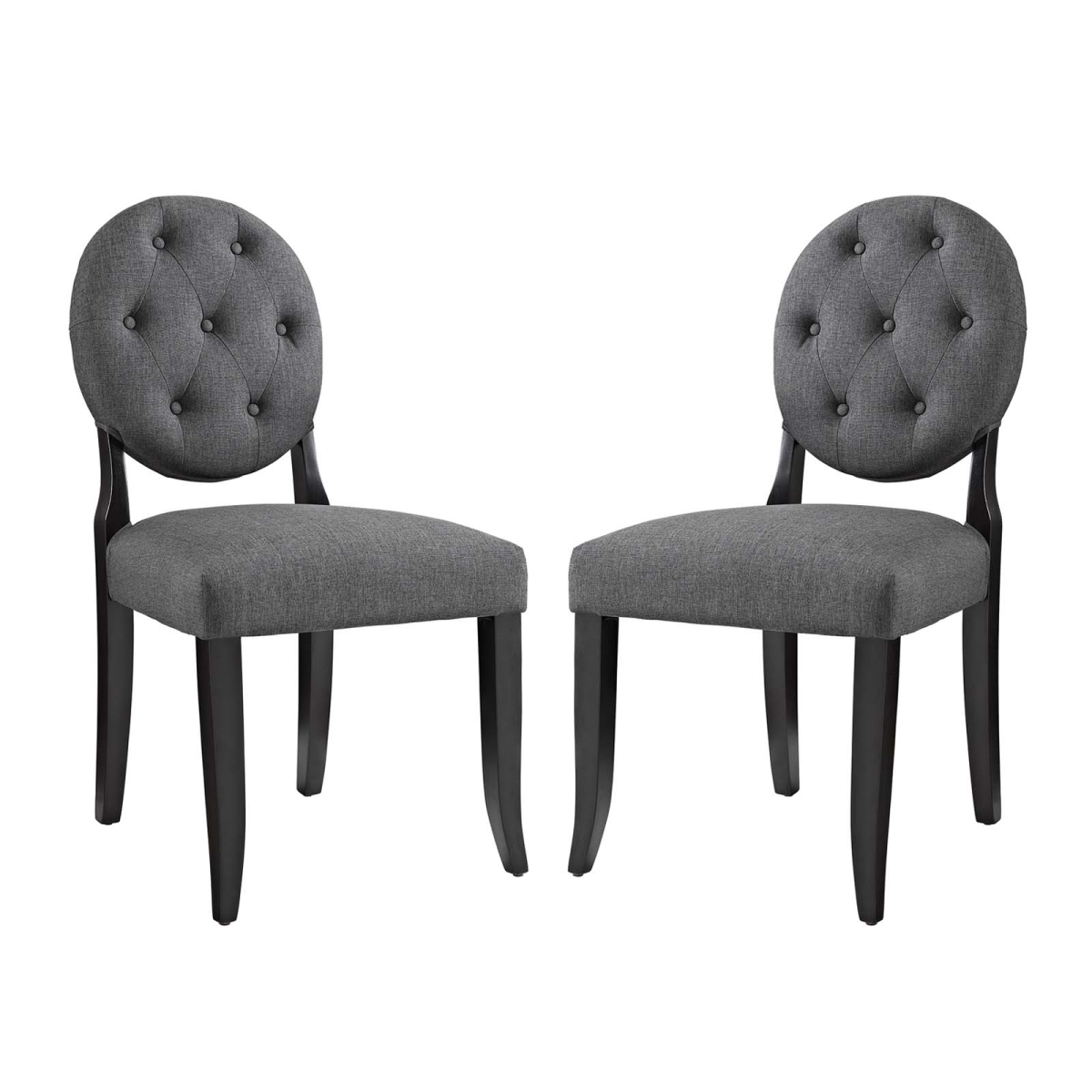 Modway Button Tufted Upholstered Fabric Two Kitchen and Dining Room Chairs in Gray