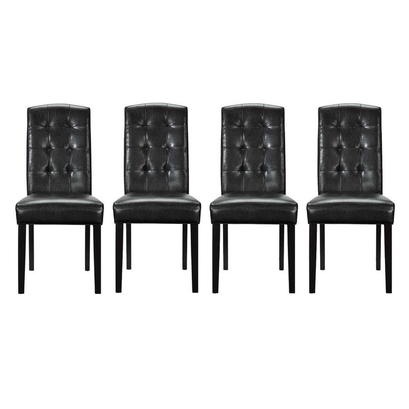 Modway Perdure Modern Tufted Faux Leather Upholstered Parsons Four Dining Chairs in Black