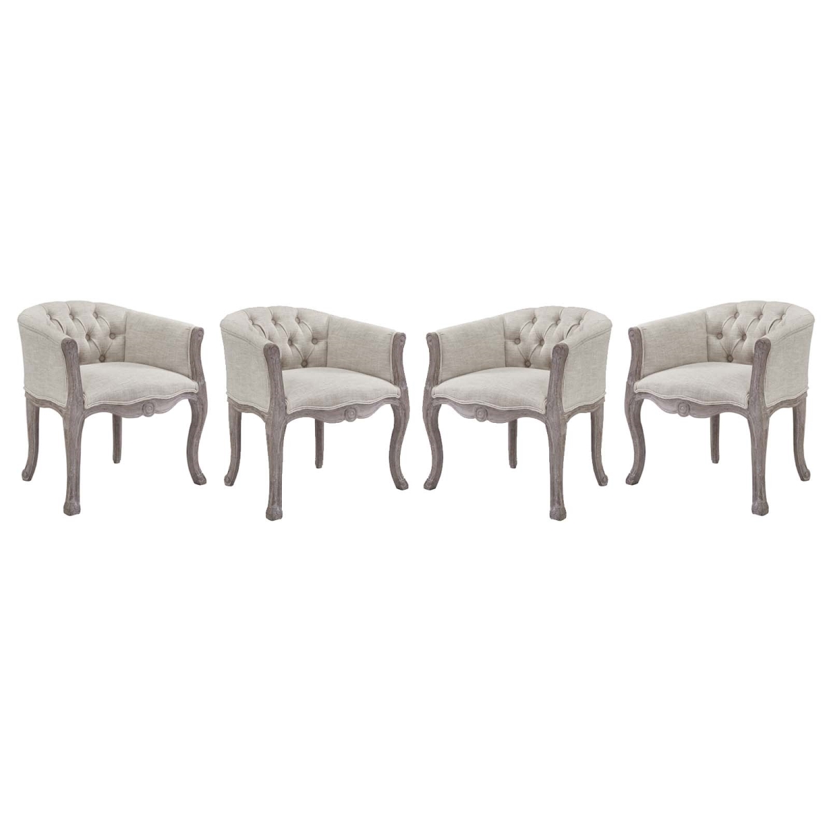Modway Crown French Vintage Barrel Back Tufted Upholstered Fabric Fully Assembled, Four Dining Armchairs, Beige