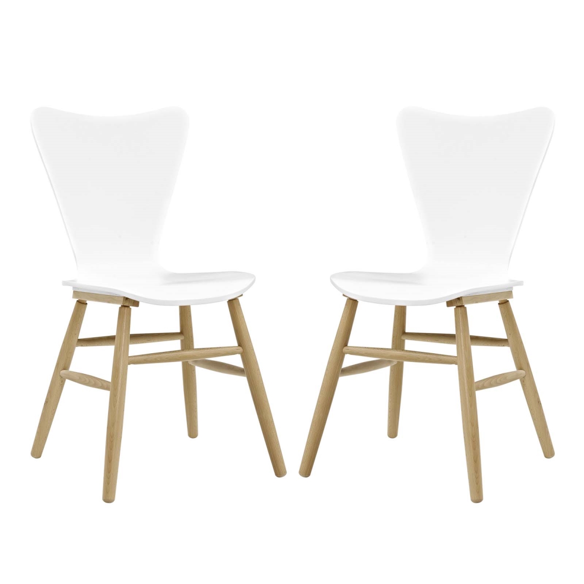 Modway Cascade Mid-Century Modern Wood Two Kitchen and Dining Room Chairs in White