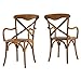 Gear Collection EEI-3479-WAL Set of 2 Dining Armchairs with Open Wooden Backrest, Natural Rattan Seat, Rustic Style, Tapered Legs and Stained Chinese Toon Frame in Walnut Finish