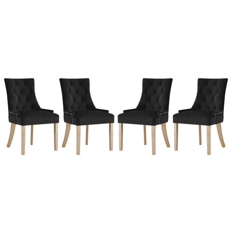 Pose Collection EEI-3505-BLK Set of 4 Dining Chairs with Nailhead Trim, Non-Marking Foot Caps, Natural Wood Legs and Stain-Resistant Velvet Fabric Upholstery in Black Color