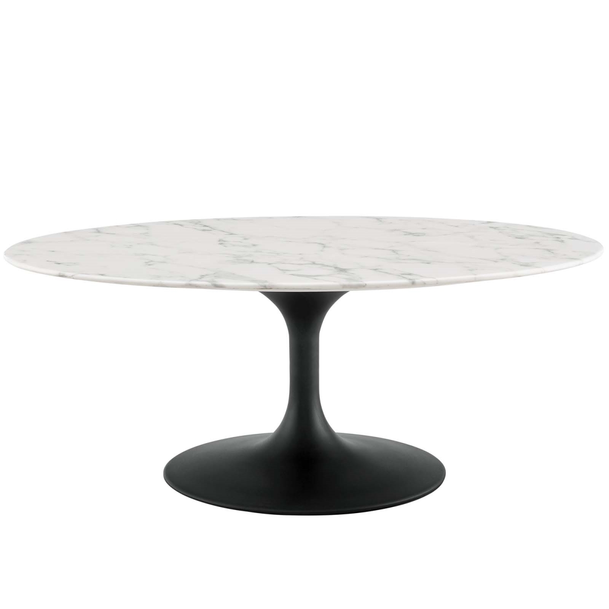 Modway Lippa Mid-Century Modern 42" Oval Artificial Marble Coffee Table in Black White