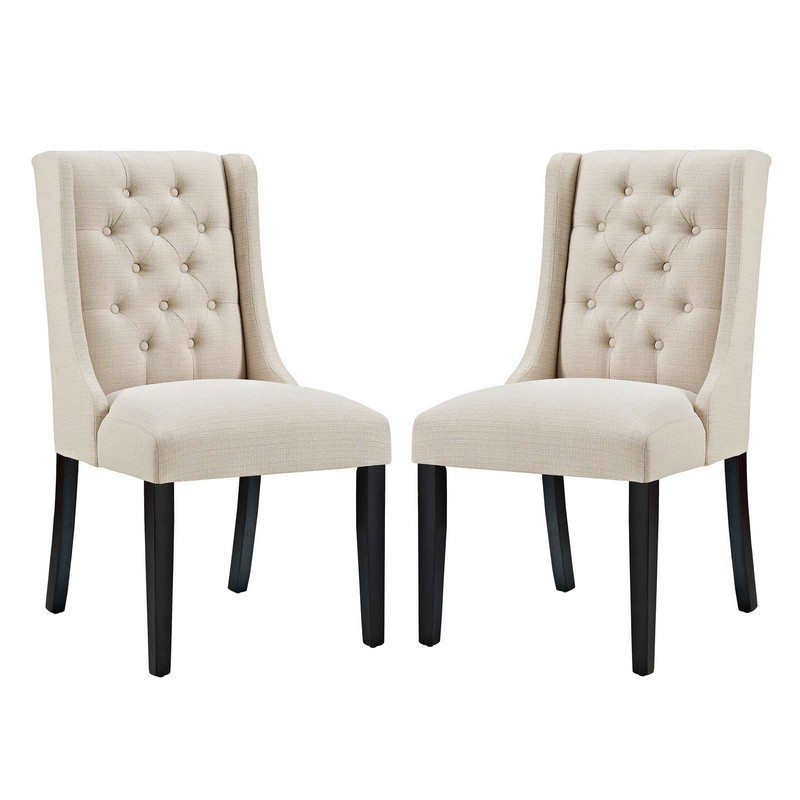 Baronet Collection EEI-3557-BEI Set of 2 Dining Chairs with Dense Foam Padding, Solid Rubberwood Frame Construction, Non-Marking Foot Caps and Polyester Fabric Upholstery in Beige Color