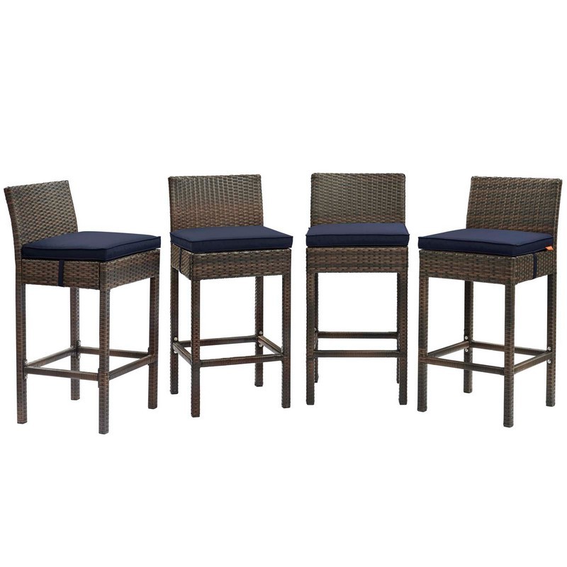 Modway EEI-3601-BRN-NAV Conduit Bar Stool Outdoor Patio Wicker Rattan Set of 4 in Brown Navy, Four