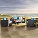 Modway EEI-3725-EXP-TRQ-SET Convene Wicker Rattan Outdoor Patio Sectional Set with Fire Pit, Two Armchairs/One Corner, Espresso Turquoise