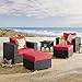 - WICKER RATTAN STYLE - This patio set comes with a brown synthetic rattan weave, while the fire pit features a magnesium oxide molding with a rattan texture while tempered glass beads fill the center