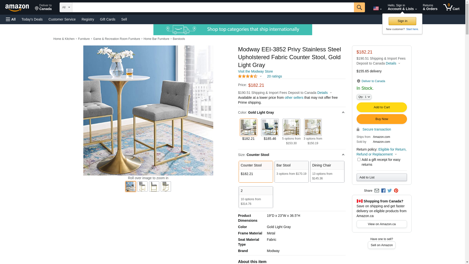 Modway EEI-3852 Privy Stainless Steel Upholstered Fabric Counter Stool, Gold Light Gray