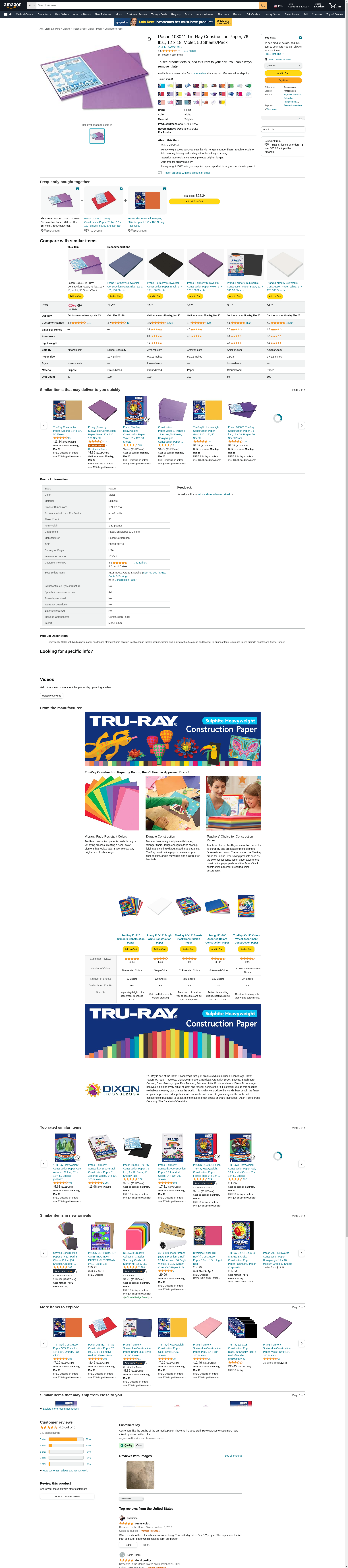Pacon 103041 Tru-Ray Construction Paper, 76 lbs, 12 x 18, Violet, 50 Sheets/Pack