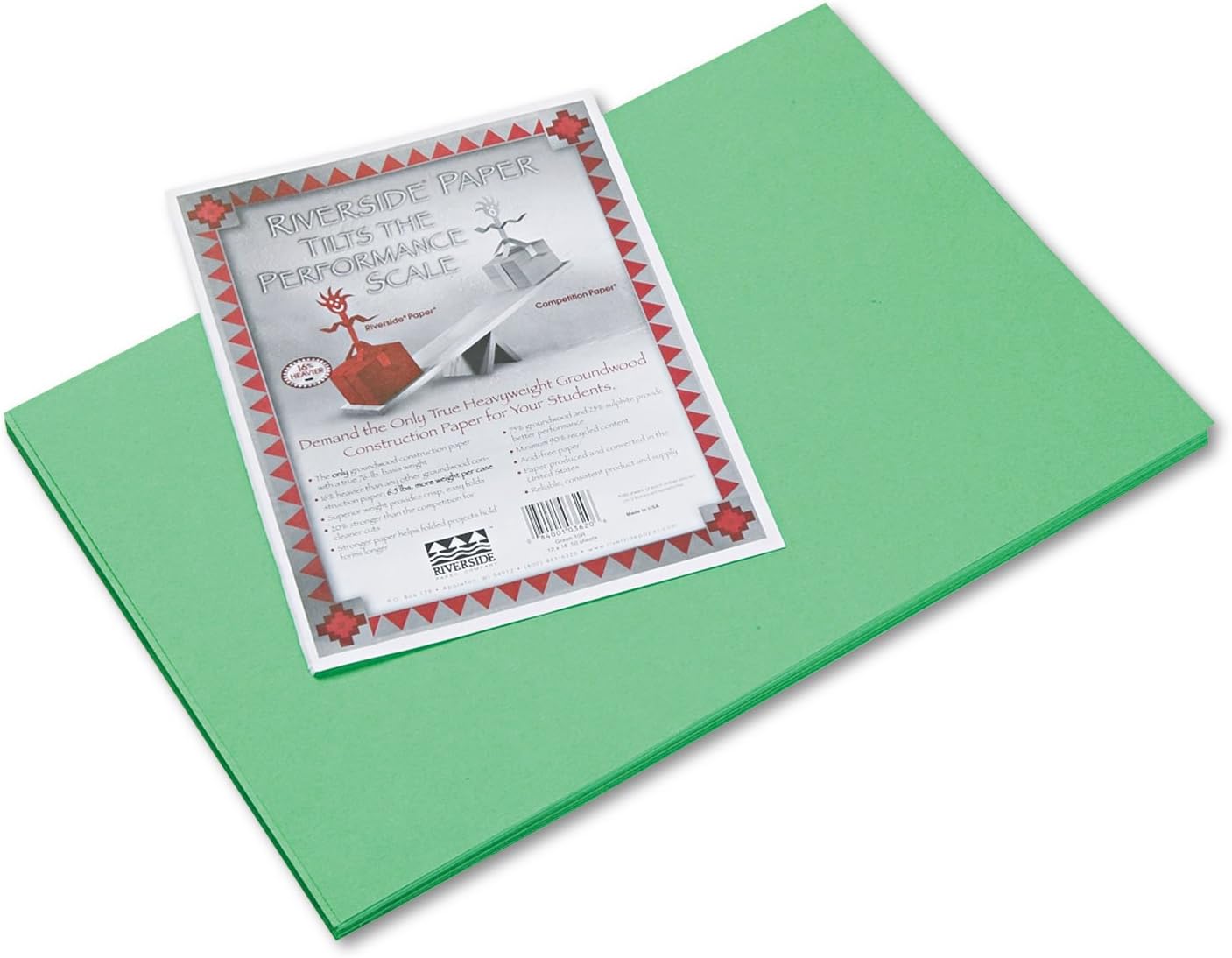 Pacon 103620 Riverside Construction Paper, 76 lbs., 12 x 18, Green, 50 Sheets/Pack