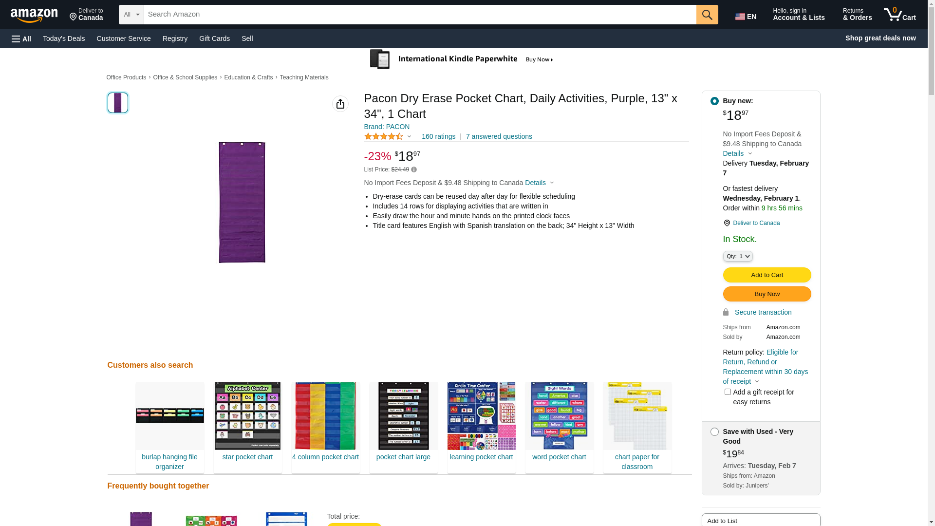 13" x 34" - 1 Chart - 14 Pockets - 14 Dry Erase Cards - English/Spanish Translated Title Card-20410-Office Supplies